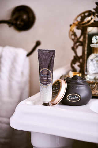 Continue your transformative journey by discovering the tantalizing aroma of SABON’s Dead Sea 3-in-1 Mask & Scrub for a complete facial makeover. This alluring multi-action formula detoxes your skin, cleanses your pores, and erases blemishes for a fresh and radiant glow thanks to its combination of 90% natural ingredients from the Dead Sea, including black mud, known for its rich and luscious texture and outstanding cleansing properties.