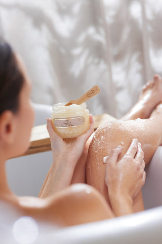 Our Sea Salt Body Scrub combines the power of Dead Sea salts, known for their rich concentration in magnesium and potassium, with a luxurious blend of three organic oils: sweet almond, jojoba, and argan. This innovative formula exfoliates, nourishes, and revitalizes the skin, leaving it feeling silky smooth and rejuvenated.